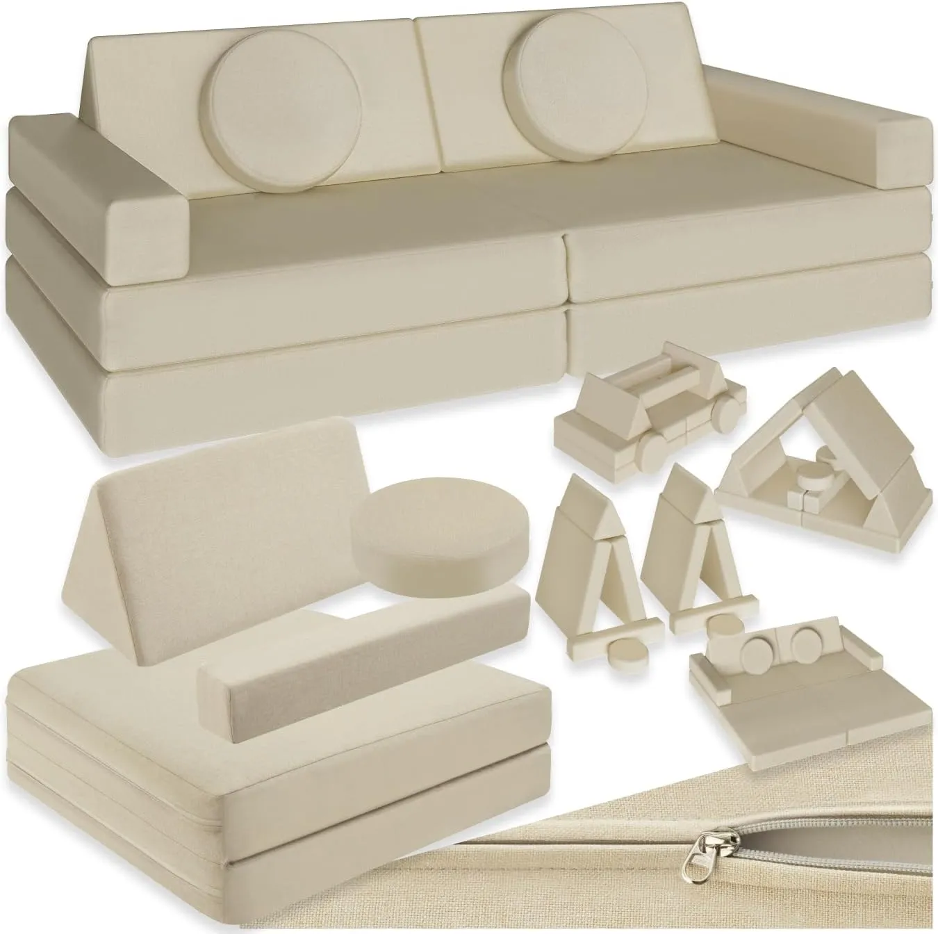 Découvrez un canapé modulaire conçu pour stimuler l'imagination des enfants. Composé de 8 blocs de mousse, il s'adapte à divers usages, comme un lit d'appoint, un coin lecture ou une cabane. Ce canapé offre un espace de jeu créatif et détendu pour les enfants. Ce canapé avec rembourrage permet un repos optimal après des activités diverses. Conçu pour les moments de détente, il s'adapte aux siestes courtes et aux séances de lecture. Le revêtement en lin doux de ce canapé est à la fois esthétique et résistant. Sa housse amovible et lavable assure un entretien facile, adapté à un usage quotidien. Ce canapé empilable est pratique pour le rangement, libérant ainsi de l'espace pour d'autres activités. Sa conception facilite la transformation en coin lecture ou jeu. Adapté aux enfants de différents âges, ce canapé modulaire s'intègre bien dans les chambres ou salles de jeux, servant de fauteuil, petit canapé ou lit selon les besoins.