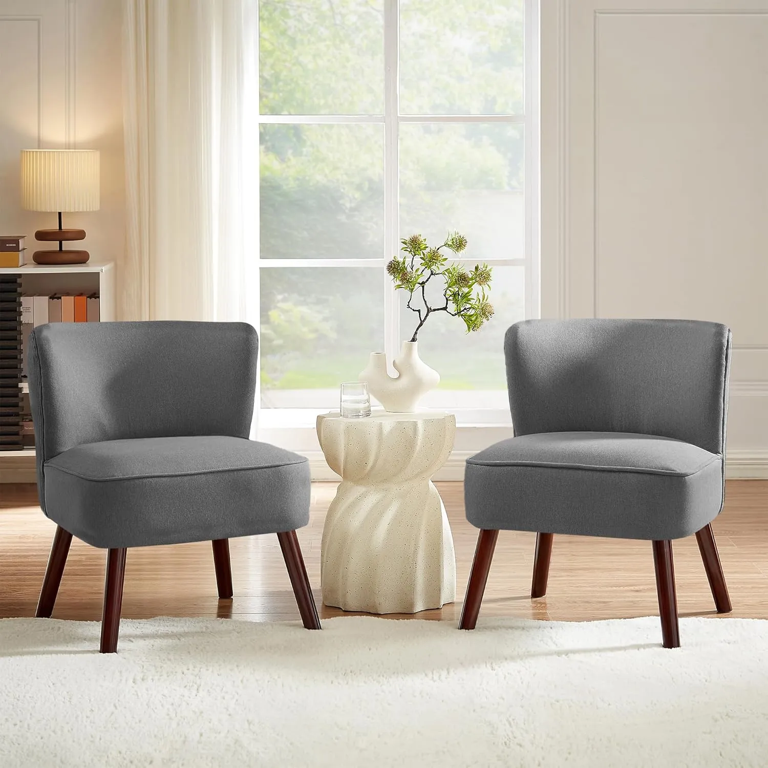 Ensemble de 2 Fauteuils Modernes en Tissu Gris Foncé, Confort et Élégance, Pieds en Bois d'Hévéa, Capacité 110 KG