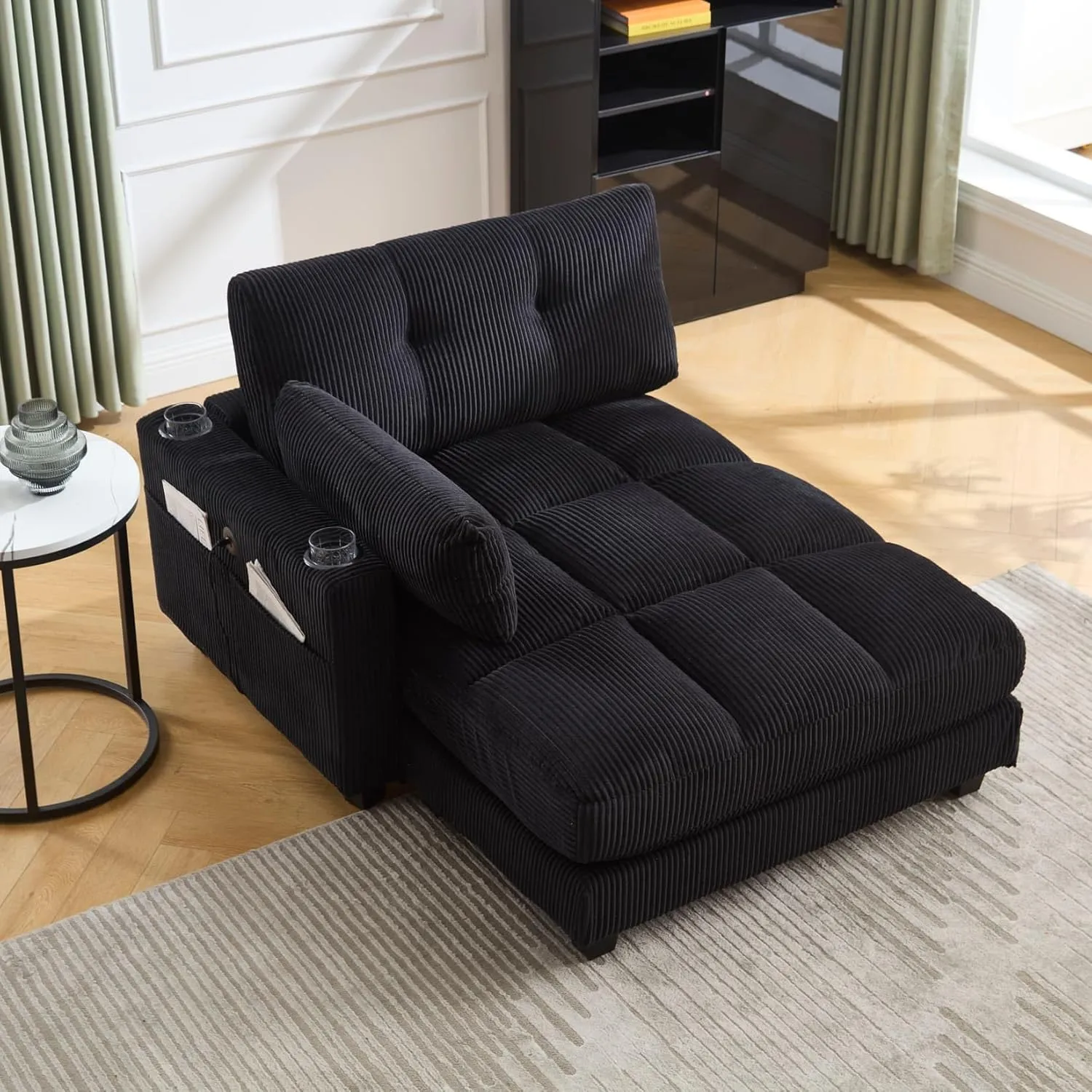 Ce canapé est doté d'un revêtement en velours côtelé qui s'intègre facilement dans différents intérieurs. Avec son dossier inclinable et son appui-tête réglable, il permet une adaptation personnalisée. Des porte-gobelets et des poches latérales offrent un espace de rangement pratique. Il dispose également d'un port USB pour recharger vos appareils. Les accoudoirs peuvent être positionnés selon vos besoins, et des coussins assortis complètent l'ensemble. Monté sur des pieds solides, il assure stabilité et s'adapte à diverses utilisations dans le salon, la chambre ou le bureau.
